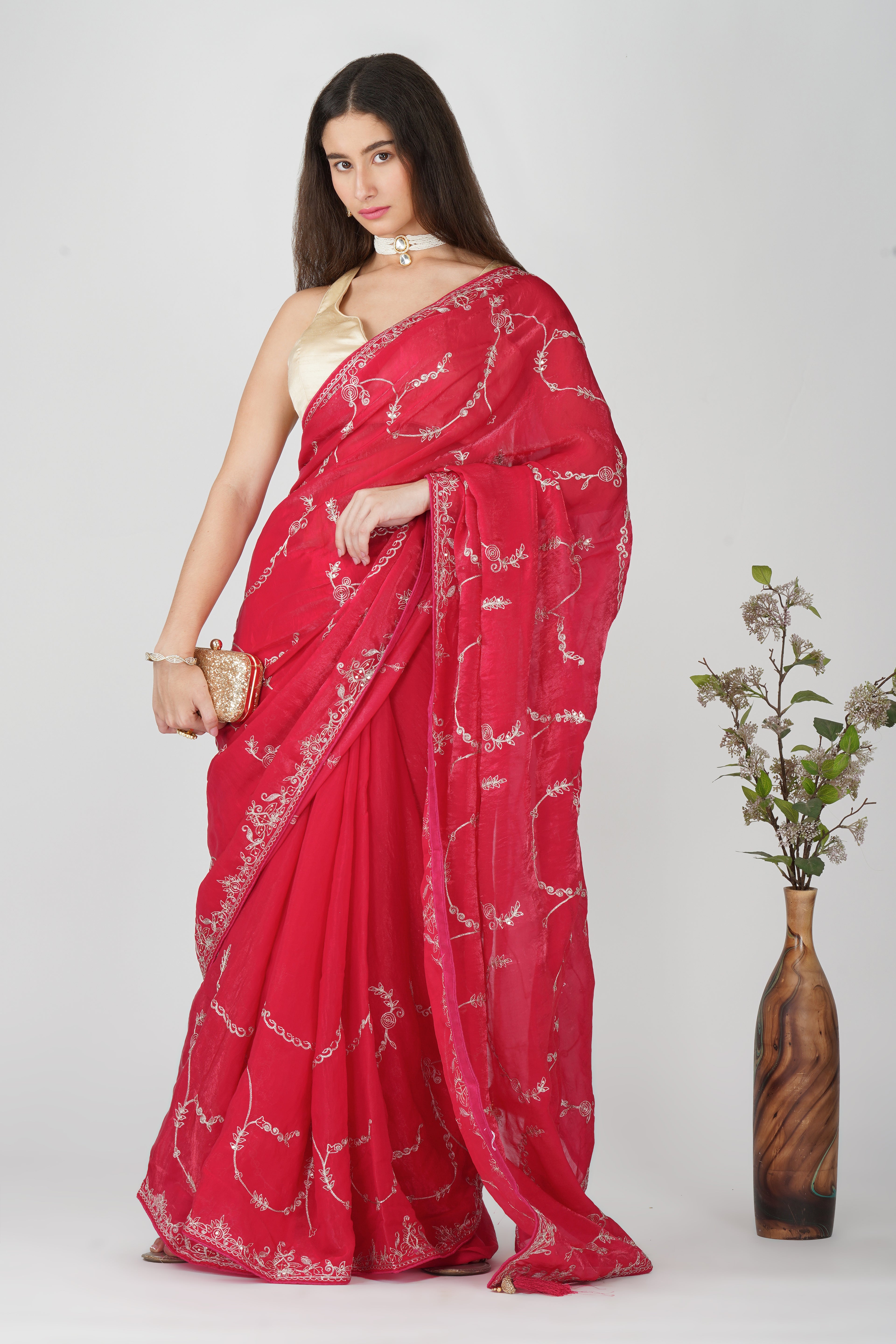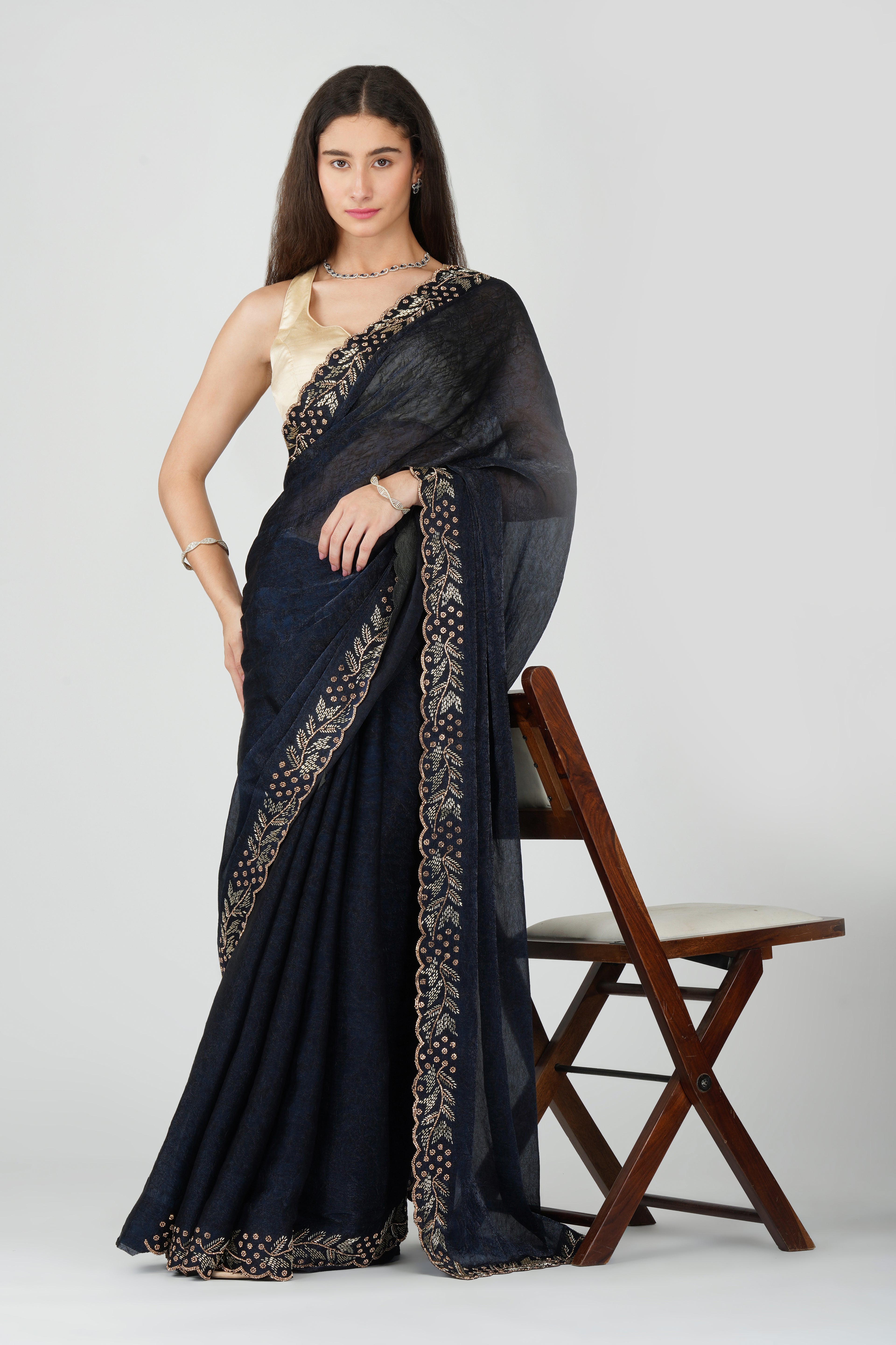Designer maroon scallop saree