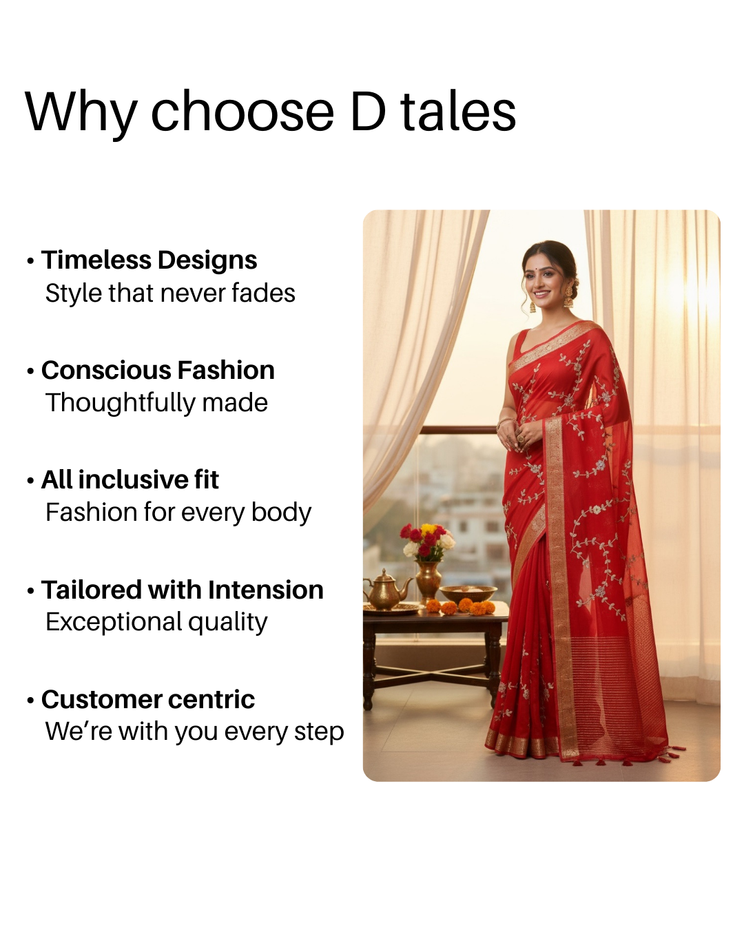 Weaving a 70-year family legacy of fine textiles into the modern era. D Tales India blends timeless ethnic grace with contemporary western silhouettes.