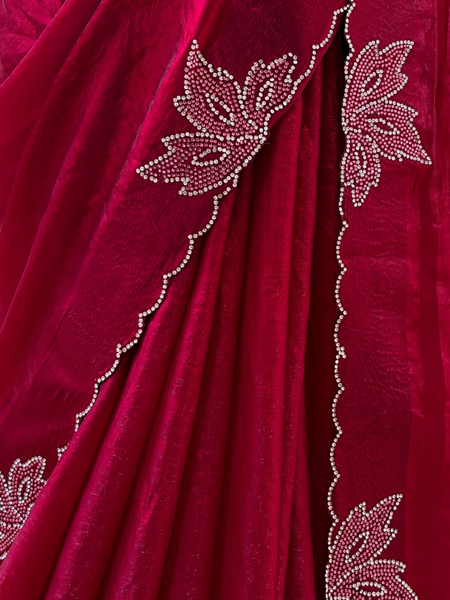 Experience the magic of understated elegance with our Fendy Satin Saree. Crafted from soft, luxurious fabric, this plain beauty radiates sophistication with a statement Swarovski border that adds just the right amount of sparkle. Designed for the modern woman who believes in "less is more," this saree is your go-to for graceful moments, whether at a cocktail event or an intimate celebration.