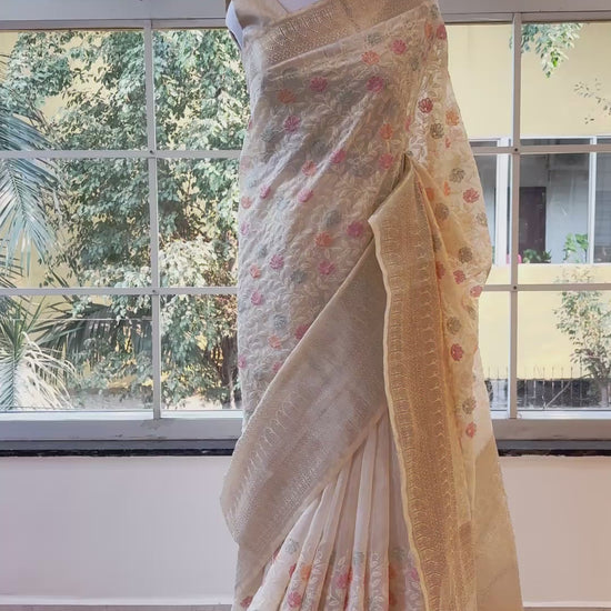 Drape yourself in effortless elegance with this cotton linen saree, adorned with intricate floral embroidered threadwork. The lightweight, breathable fabric makes it perfect for all-day comfort, while the zari border adds a subtle touch of tradition and sophistication. A timeless piece for festive gatherings, workwear, or casual elegance, this saree is a must-have for every saree lover.