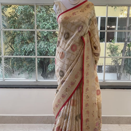 Step into the spotlight with this premium silk saree , designed to exude elegance and grandeur. This exquisite piece showcases a vibrant multicolour palette, making it a perfect choice for festive and formal occasions. The rich zari work weaves a tale of tradition and luxury, while the statement border adds a bold and sophisticated touch.