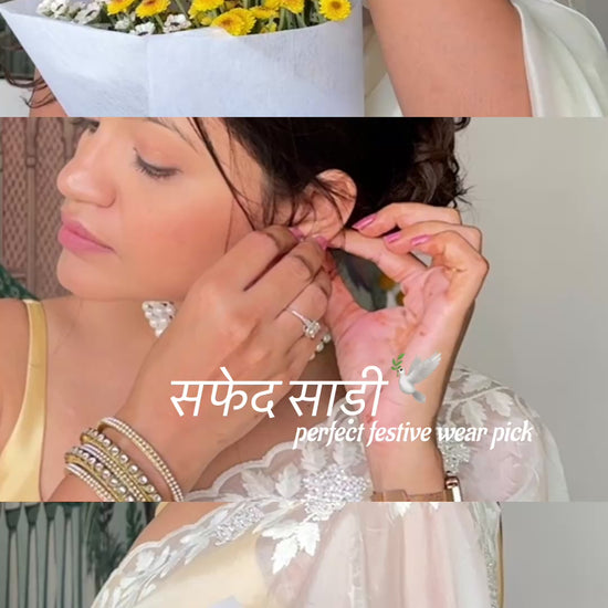 It’s such a soft and flowy saree! I wore it to a puja at home, and it looked simple yet so stylish. The scallop detailing is a nice touch.